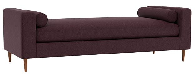A sleek and soft lounger that won’t impede any views, ideal for sitting a spell in front of a fireplace, window, or at the foot of a bed,. Opt for a luxe fabric like velvet or chenille. Sloan Daybed in Eggplant, $1,195, interiordefine.com