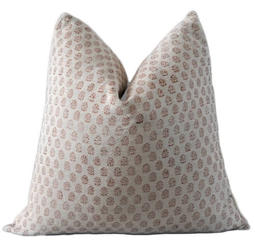 A beautifully hand-blocked Indian pattern atop a luxe Belgian linen fabric. Soft and subtle, this pillow brings just a dose of pattern. Ayo-Indian Hand Block Linen Pillow Cover, $55, ruffledthread.com
